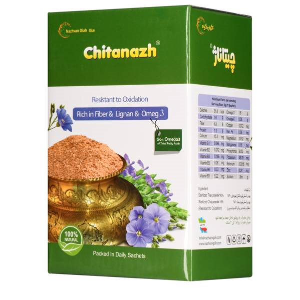 چیتاناژ پودر کتانچیا - ساشه ای ناژوان گیاه - Nazhvan Giah Chitanazh Sachet Rich in Fiber & Lignan & Omega3
