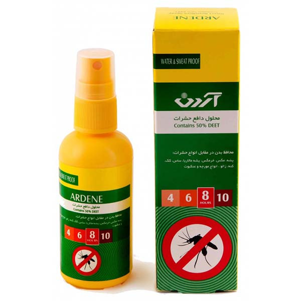 افزودن به لیست مقایسهمحلول دافع حشرات آردن محصولی بسیار موثر جهت محافظ و پیشگیری در برابر گزش حشرات می باشد. این محصول دارای رایحه ای مطبوع بوده و به راحتی بر روی پوست صورت و بدن پخش و جذب می گردد همچنین تاثیر محلول دافع حشرات آردن تا 6 ساعت بر روی پوست باقی می ماند. محلول دافع حشرات آردن ترکیبی از سيترولنا، دي اتيل تولوآميد و دي متيل فتالات می باشد که موجب دفع حشرات همچون پشه، مگس، خرمگس ، پشه آنوفل، شپش، ساس، كك، كنه، انواع مورچه و عنكبوت و.. می گردد. محلول دافع حشرات آردن را بر روی پوست افراد بالای 2 سال می توان استفاده نمود