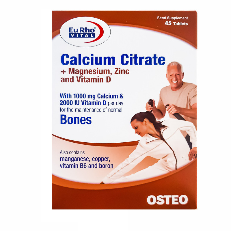در هر ۴ قرص کلسیم سیترات یورویتال (دوز مصرف روزانه) ۱۰۰۰ میلی گرم کلسیم از نوع کلسیم سیترات ، ۱۶۰ میلی گرم منیزیم، ۲۰ میلی گرم زینک، منگنز، مس و بور به میزان ۲ میلی گرم از هرکدام موجود است. لازم به ذکر است که ۲۰ میلی گرم ویتامین ب۶ و ۵۰ میکروگرم ویتامین دی نیز در ترکیبات کپسول کلسیم سیترات یورو ویتال وجود دارد. بنابراین مصرف ۴ قرص از این محصول در روز نیاز روزانه شما به هرکدام از این ترکیبات را کاملا برطرف مینماید به همین دلیل این مکمل را میتوان به عنوان بهترین قرص کلسیم خارجی معرفی کرد.